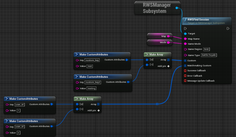 Game Region: This will be the region you're searching for we also have a node called "RWSGetRegions" to get a list of region usually you add this to a dropwdown and when a user selects that you return the result and plug it into GameRegion. We do this inside the Example Lobby if you wanna take a look at that.
